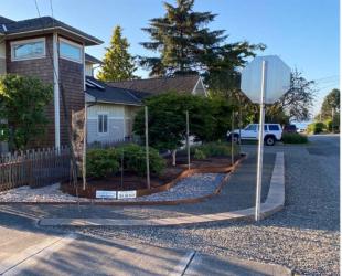 Port Townsend City Code allows property owners to install ‘minor landscaping’ in the right of way in front of their house without a permit, so long as it meets certain requirements. The intent of this brochure is to share information about what is (and what is not) permitted in the public right of way (ROW), and when a permit is required. Permits are required for Rain garden installation, and grading in the ROW as well as developing in parking areas.