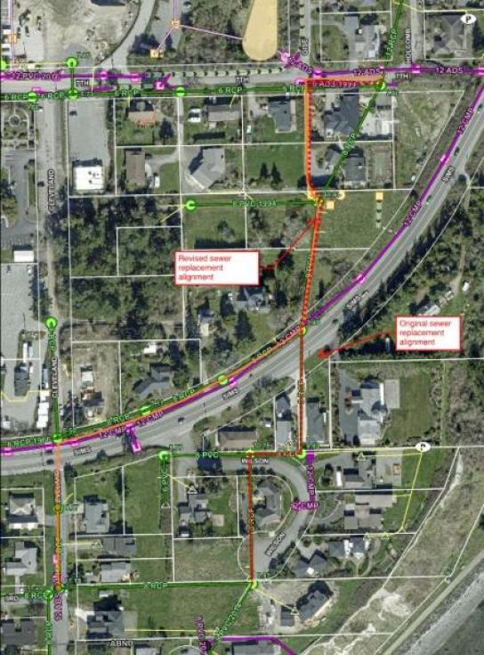 - The sewer alignment shifted west between Wilson Street and SR-20