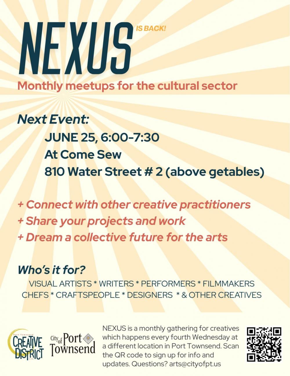 Join the City’s arts and culture team for their monthly meetup of NEXUS! These informal get-togethers are a place to build connections between creative practitioners of all disciplines, share what you are working on and dreaming about, and talk about issues relevant to the creative community.